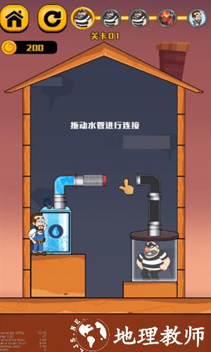 王师傅救救我这款休闲闯关游戏采用了卡通的风格设计,在游戏里玩家将会成为一名管道维修工,每天都会有很多人来找你帮忙去修理下水道问题,他们的下水道经常被堵是因为里面有个越狱的囚犯,如果让囚犯出来那将非常危险,所以我们需要将管道进行连接让水直通囚犯的房间。