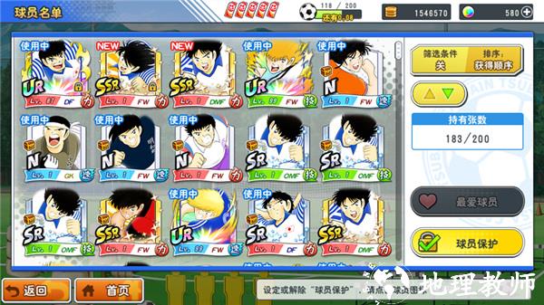 2、球员名单功能一、可查看自身拥有的所有卡牌,还能对稀有球员执行 “球员保护” 操作;点击右下角 “球员保护”,选择需保护的卡牌,被保护卡牌会显示小锁标识,且不能被出售或用作强化材料(最爱球员功能与球员保护类似),可避免失误操作导致珍稀卡牌损失。
