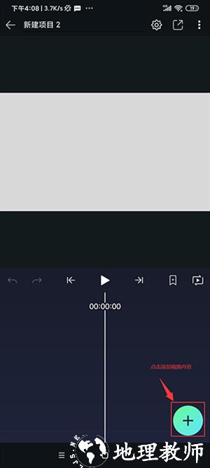 5、新建项目初始无视频内容,需手动编辑;点击编辑界面右下角的 “绿色加号”,打开添加素材与工具的菜单;