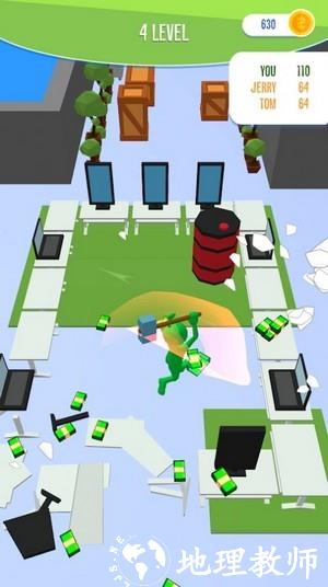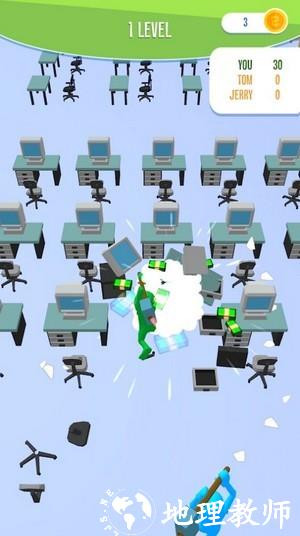 1. 进入老板的办公室,使用各种武器摧毁一切可见的物品,包括文件夹、桌椅等。