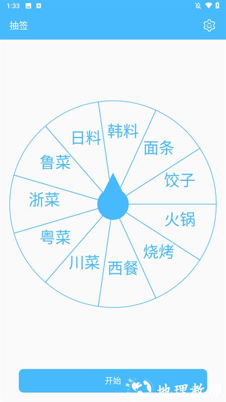 2、其中第一种为转盘型抽签,点击转盘上的 “开始” 按钮,转盘会随机旋转,最终自动停下,指针指向的选项即为结果;