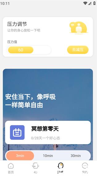 5、除壁纸功能外,APP 支持减压服务,在主界面找到 “减压” 相关入口(如冥想界面),即可使用减压功能;