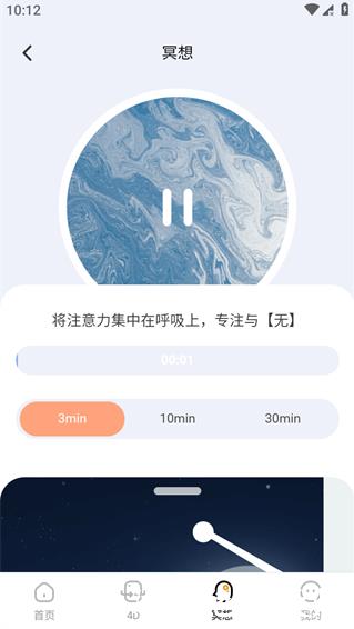 4、【冥想放松身心】:将壁纸功能与冥想减压结合,支持定期开展冥想练习,通过科学的呼吸与引导方法,帮助培养良好心态,缓解生活与工作压力。