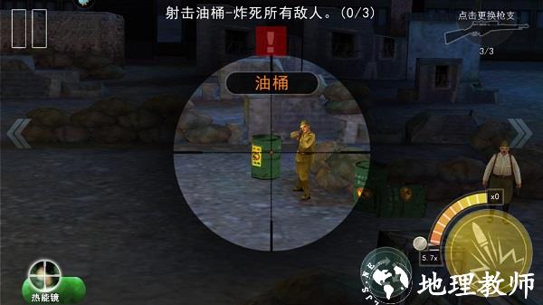 4、技巧、各关卡作战任务不同,若想快速歼敌需留意四周环境,利用汽油桶、地雷等道具完成任务,既能节省子弹,又能对大范围敌人造成高额伤害。