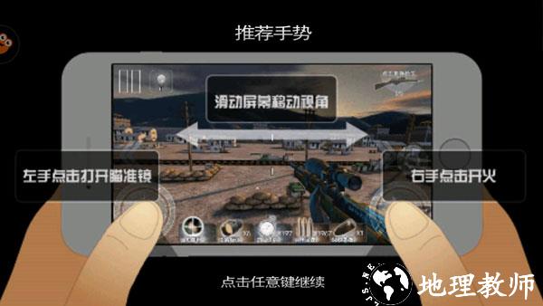 1、关于操作、左手边可开启瞄准镜,右手边为开火按钮,滑动屏幕能移动视角,便于查看战况与占据有利地势。