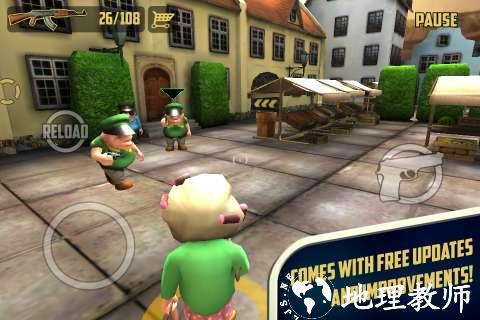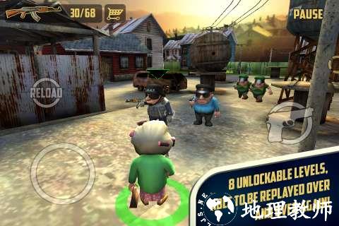 跟随正走出监狱的黑帮老太。帮助她击败任何敢于尝试阻止她抢劫城里较大间银行的人!!!