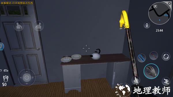 3、玩法简洁,初始教学剧情会交代核心操作:潜入房屋、拾取与更换工具、潜行、翻窗、盗窃,完成后携带战利品驾车逃离,再到 “黑心商人” 处出售换取金钱,解锁更多内容。