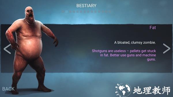必须熟悉你的对手:每种僵尸都具有独特机制。包括肥胖僵尸、跳跃僵尸、持剑疯尸、毒液僵尸等。我们几乎囊括了你所能想象的每一种死亡威胁。