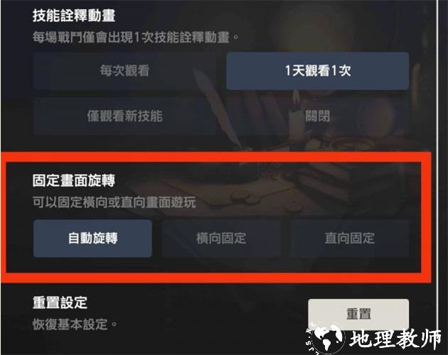 2、在设置界面里,将 “固定画面旋转” 选项调整为 “自动旋转” 模式,开启画面自适应功能。