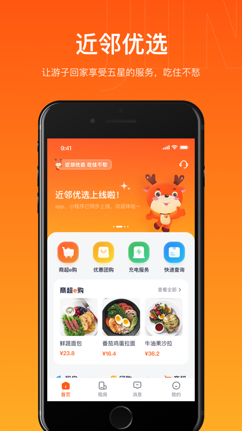 近邻优选App是一款个人便利生活综合服务平台,平台里有许多服务让用户可以享受生活。近邻优选App里有购物商城,商城内分类齐全,生活用品、酒水饮料、休闲零食、美妆护肤都有,用户可以在这里购买自己需要的。另外还有租房房源,精准定位用户的所在地,将周遭的房源信息一一呈现,让用户多家对比。