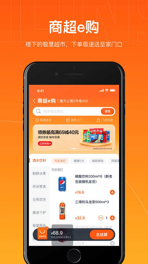 近邻优选app对个人生活带来了很高的服务质量,附近的商城下单后有专员派送,在家就能吃到美食。还有快递查询功能、充电桩扫描等,让那个用户的生活变得更加贴心。