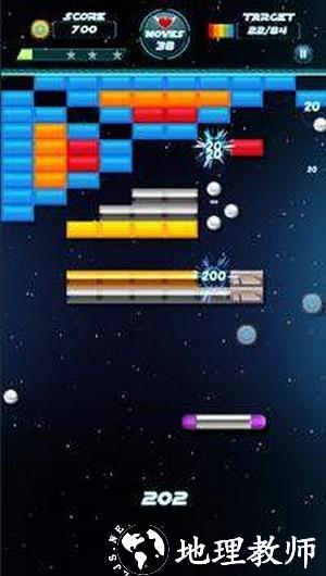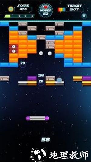 2、操作比较简单,只需要轻扫或者敲击屏幕进行瞄准,通过射出去的球来破坏砖块。
