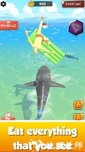 3、完全真实的物理系统使你在游戏中疯狂捕食,增强力量以增加鲨鱼颌骨的力量和攻击力。