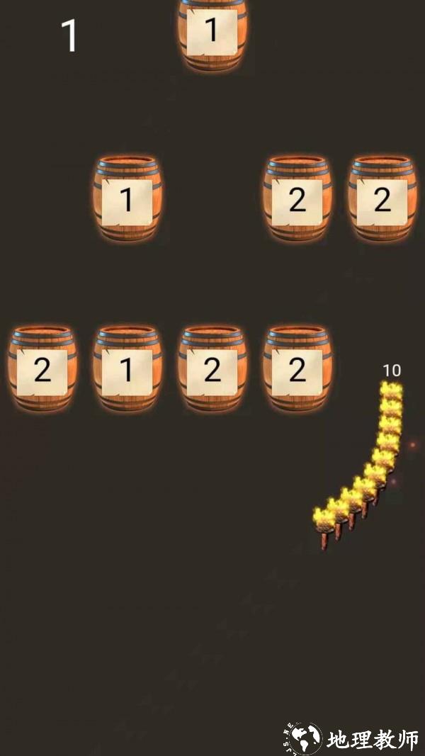 最近小编发了款很有趣的休闲益智游戏《火把烧木头》。游戏中,玩家最初只需要操控一个小火把,在闯关过程中,将其它落单的火把收集到自己队伍中,扩大自己的火把队伍,遇到木桶就去对它进行烧毁,你的火把数量对应着木桶上的数字,还是需要玩家有敏捷的反应力的。
