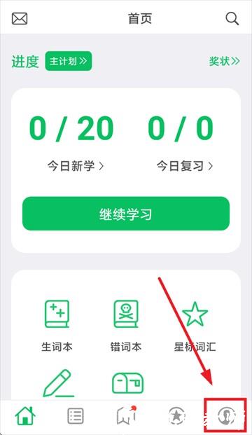 1、下载安装词力派并打开软件,进入后、点击右下角的我的。