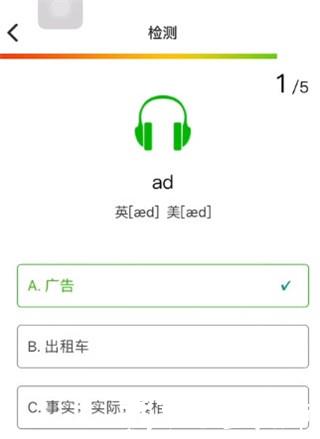 4、 发音评测:单词皆有真人发音,跟读训练,发音问题一目了然。