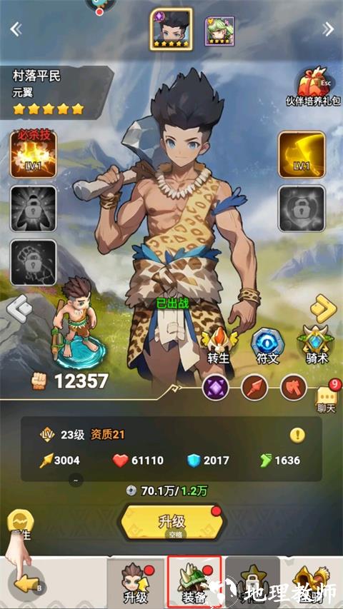 3、在选中伙伴的界面下方,找到 “装备” 选项并点击,进入该伙伴的装备管理界面。