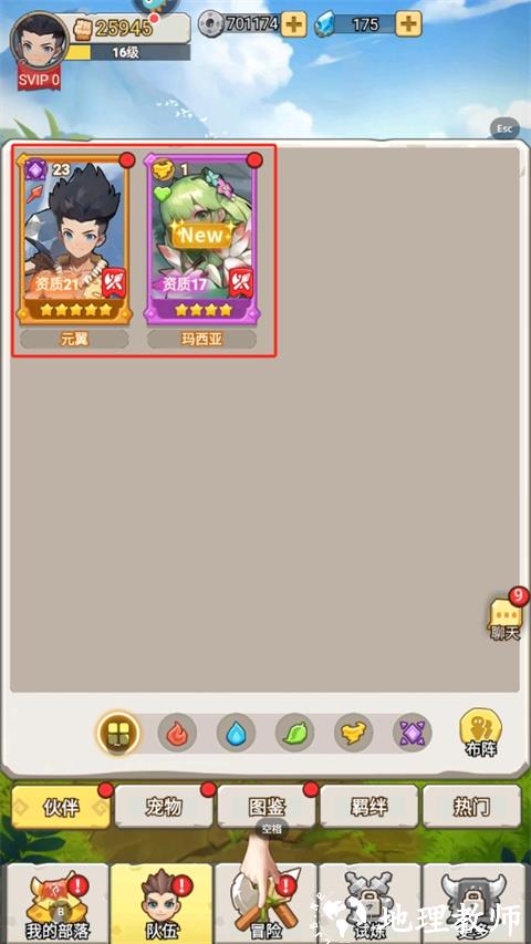2、提升伙伴能力的方式一:升级、进阶,可提高伙伴等级、属性,解锁并升级技能。