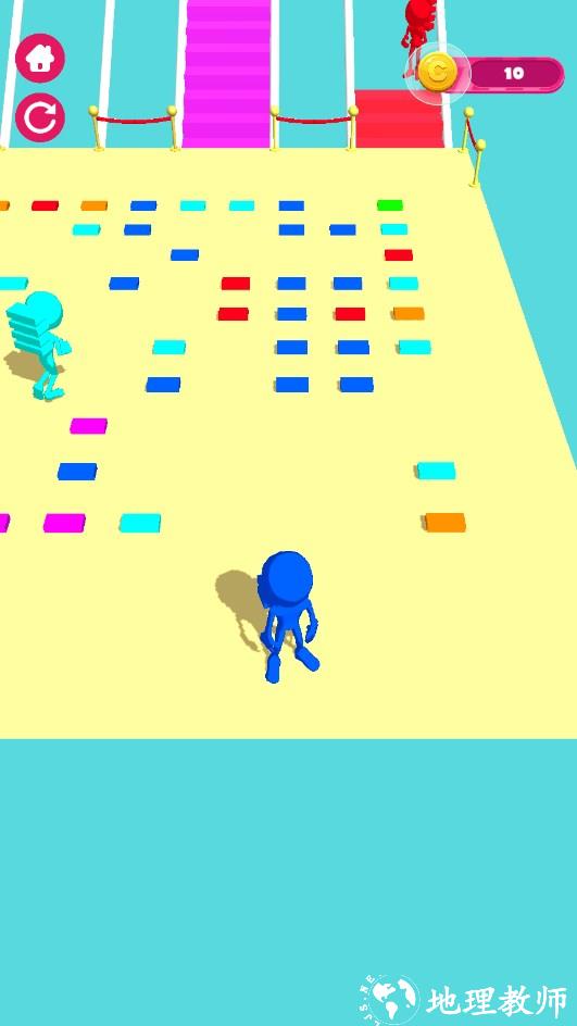 1、通过收集堆叠颜色来建造越来越长的桥梁,从而赢得这场赛跑。