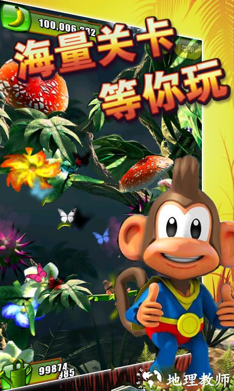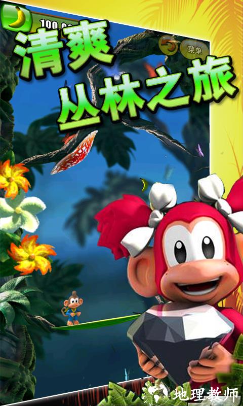 《丛林大冒险3D》是一款画面精美高清和可玩性非常高的休闲游戏。游戏的操作非常简单,跟《愤怒的小鸟》的操作方式类似。游戏的场景设计在热带雨林里,一只顽皮的小猴子在鸟语花香中轻松地弹跳,一面享受唯美怡人的景色,一面收集的香蕉和隐藏在树丛中的钻石,在小伙伴们的欢呼中顺利回家,一个关卡就结束了,小猴子需要收集一定数量的宝石,才能解锁下一关。