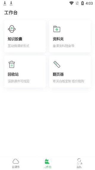 4、在工作台界面,拥有知识胶囊、资料夹、翻页器供用户使用;