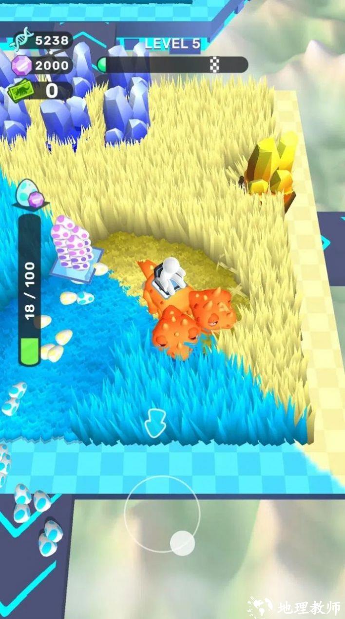 2. 在割草过程中,注意收集鸡蛋和宝石等道具,这些道具可以用来解锁新的恐龙和道具。
