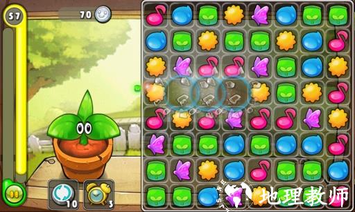 转换和匹配3个以上同样图块的雨水,音乐,蝴蝶,肥料和阳光满足你的植物所需!