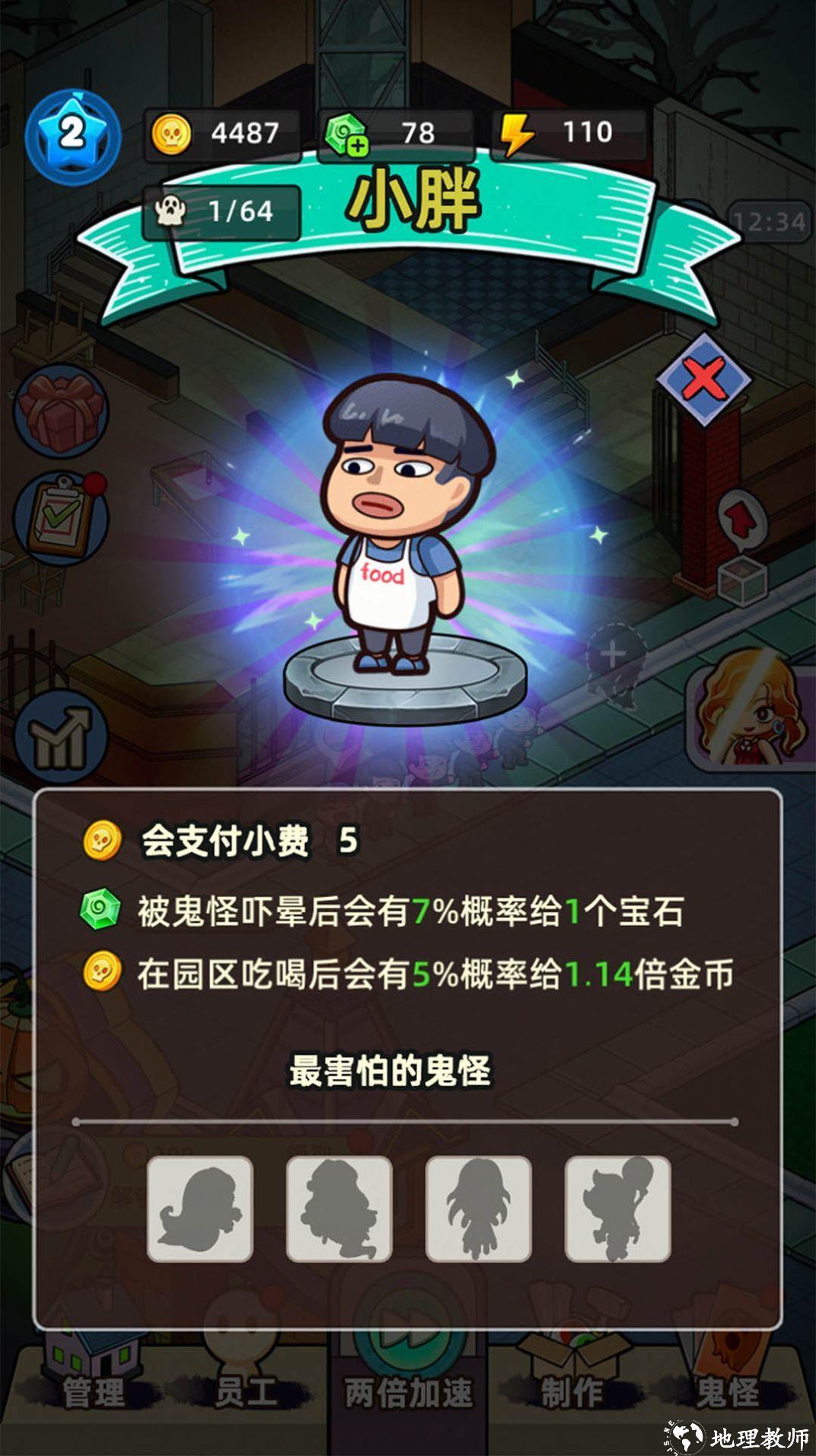 2. 丰富的鬼怪角色:招募各类造型各异、恐怖样貌的猛鬼作为员工,为游乐园增添了不少惊悚元素。