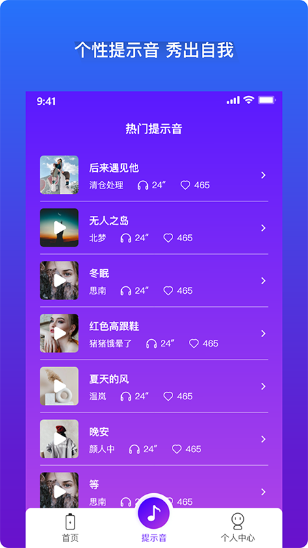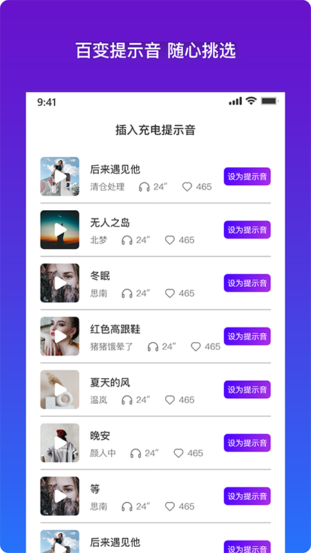 2、每种提示音都具有自己独特的风格,可以挑选喜欢的提醒铃声;