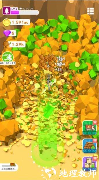 3、趣味性的画面充斥,多种元素融合,让你沉浸在砍伐树木的世界中