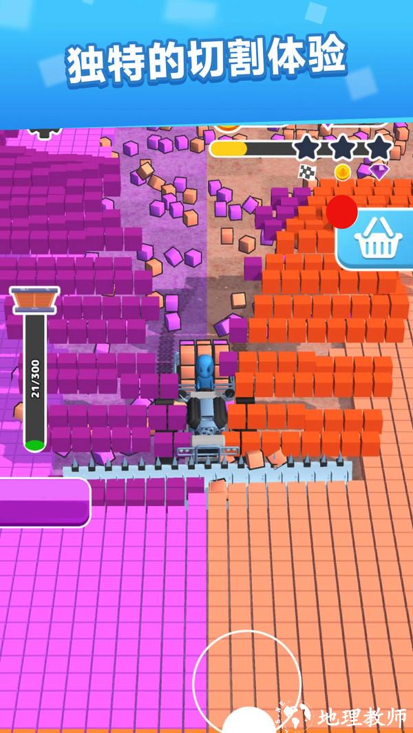 收割机驾驶模拟器这款休闲解压游戏中玩家们可以驾驶不同的载具来进行收割,草坪、像素方块等等各种元素都包含在内,卡通的风格设计也让整个游戏的画面色彩非常丰富。轻松易上手的驾驶方法和无尽的关卡挑战足以让大家对它爱不释手,在一次次的收割中我们也会不断地升级解锁其他全新的收割机。