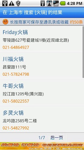 交互查询。您可以方便将查询到的商家信息设置到电话号码本,通过客户端直接拨打商家电话,查看商家地图和号百名片,并提供天翼