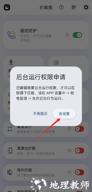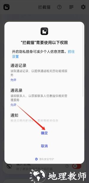 3、按照软件提示,为 “拦截猫” 授予所需的全部权限,保障各项功能正常运转。