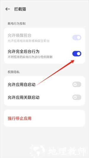 5、打开手机电池管理页面,找到对应设置项,选中 “完全后台运行” 选项,避免后台被限制。
