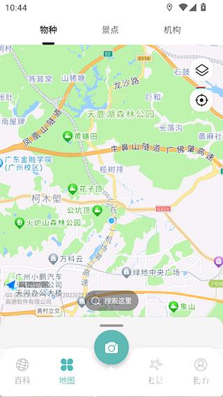 2、地图界面有附近的物种、景点等信息