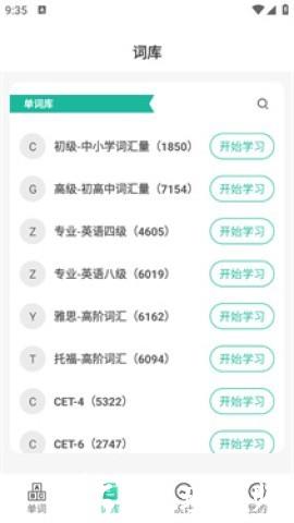 3、在词库列表中挑选想要学习的内容,词库覆盖范围广泛,能轻松找到适配自身水平的单词资源。