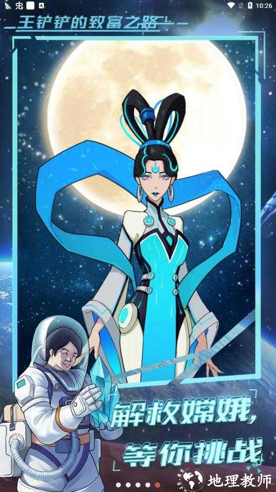 王铲铲的致富之路月宫是一款精彩纷呈的模拟经营类安卓游戏。在这个游戏中,你将扮演王铲铲,一个怀揣致富梦想的冒险家,在荒芜的月球上展开挖掘之旅。你需要拿起铲子,挖掘月球深处的宝藏,解锁各种神秘的月宫法宝,招募不同的角色帮助你进行挖掘,经营商铺,完成各种任务,最终成为月球上的首富。卡通画风的游戏场景和搞笑有趣的游戏故事将带给你全新的游戏体验。