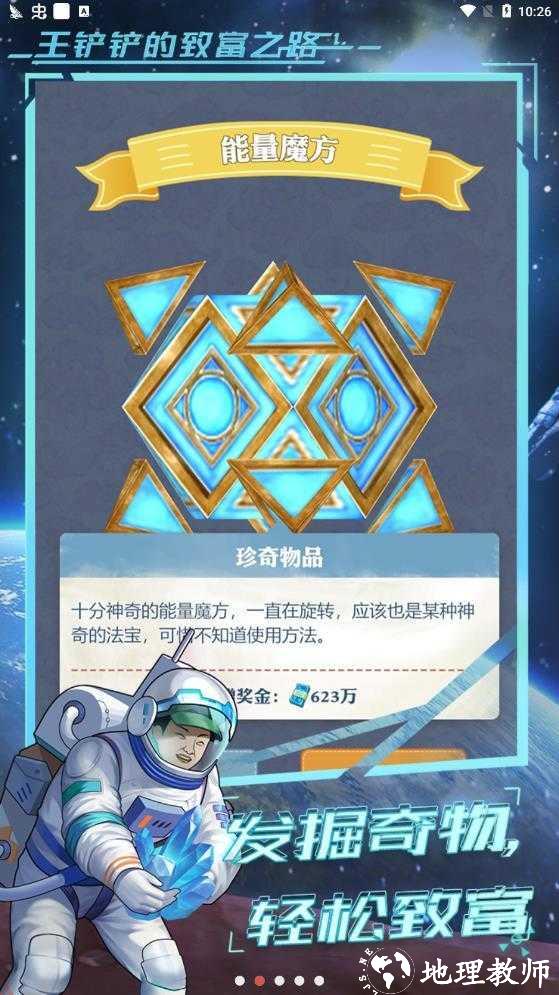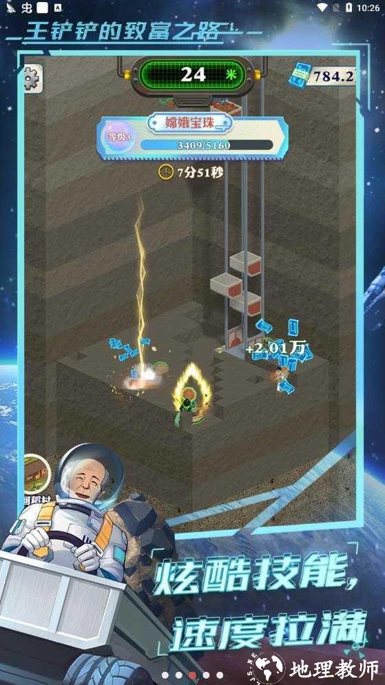 王铲铲的致富之路月宫是一款非常有趣的模拟经营游戏,它将挖掘冒险和经营商铺相结合,为玩家带来了全新的游戏体验。卡通画风的游戏场景和搞笑有趣的游戏故事让游戏更加具有吸引力。同时,游戏中有多种角色和宝物可以解锁,增加了游戏的可玩性和趣味性。无论是喜欢挖掘冒险的玩家还是喜欢经营商铺的玩家,都能在这款游戏中找到自己的乐趣。快来加入王铲铲的致富之路,一起在月球上挖掘宝藏,成为首富吧!