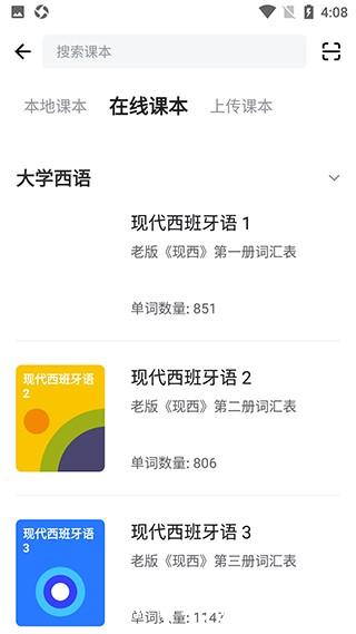 3、从在线课本列表中选择要学习的西班牙语课本,系统会自动将课本下载到本地,后续无网络时也能正常使用。