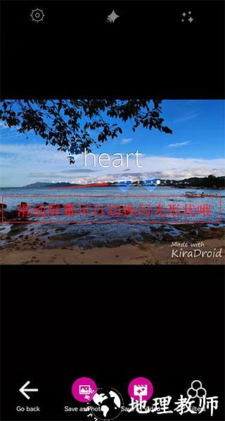3、添加图片后,在手机屏幕中间滑动,挑选心仪的闪光风格;