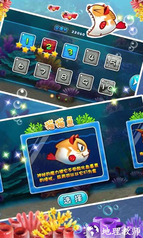 2. 可解锁鱼类:随着游戏的进程,玩家可以解锁更多种类的鱼类,每种鱼类都有其独特的能力和外观,为游戏增添了更多的可玩性。