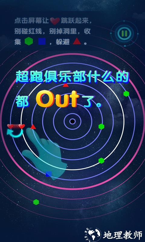 2. 点击跳跃:游戏的主要操作方式是点击屏幕,让角色“心”跳跃,过程中要避免碰触到红线和红色三角形。
