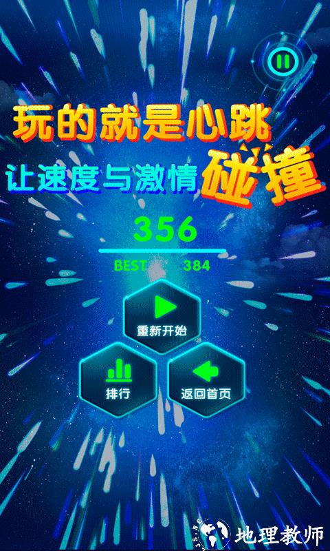 3. 收集元素:玩家需尽可能多地收集绿色的六边形和蓝色的正方形,这些元素能增加分数。
