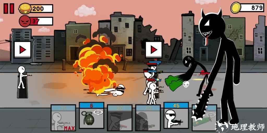 2. 横版射击与战术部署相结合,玩家可以扮演指挥官调度多兵种火柴人部队作战。