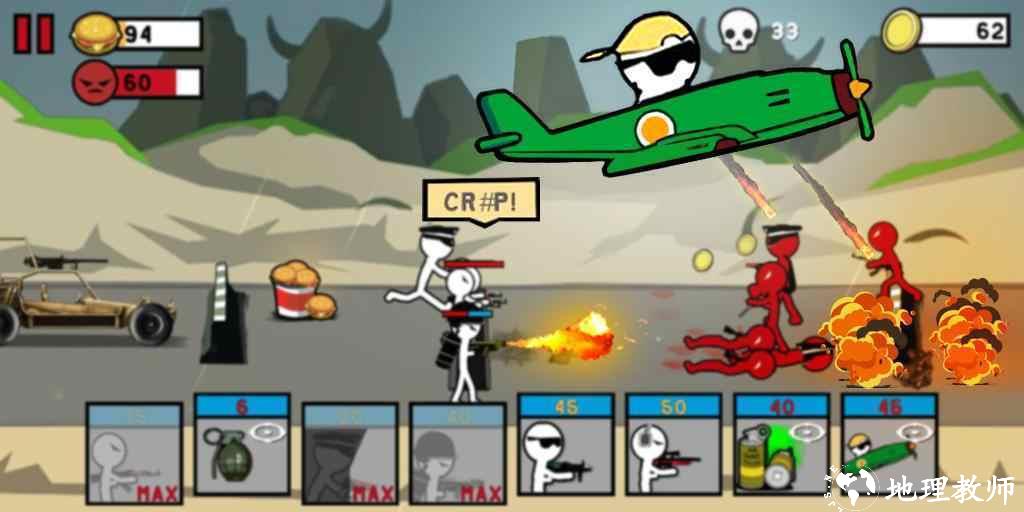 火柴人战役二战(stickman army)是一款以火柴人形象为主角的动作冒险射击游戏,背景设定在第二次世界大战时期。玩家将扮演火柴人军队的指挥官,带领由火柴人组成的多样化部队,在各种历史战役中展开激烈的战斗。游戏提供了丰富的武器装备和战术选择,玩家需要通过策略部署和火力支援,击败敌人,完成各种任务和挑战。