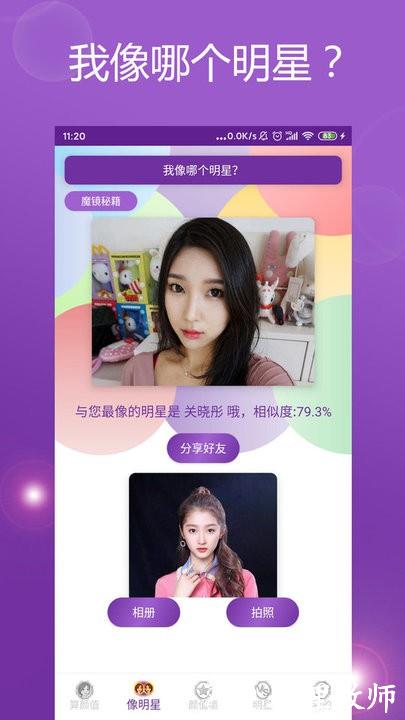 1、测算照片中人物的年龄、颜值,只需拍摄或从相册选择一张照片,等待几秒,即可测算