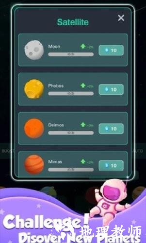 3、放置养成的模式,添加各个星球即可,加快成长的速度,获取更多资源。
