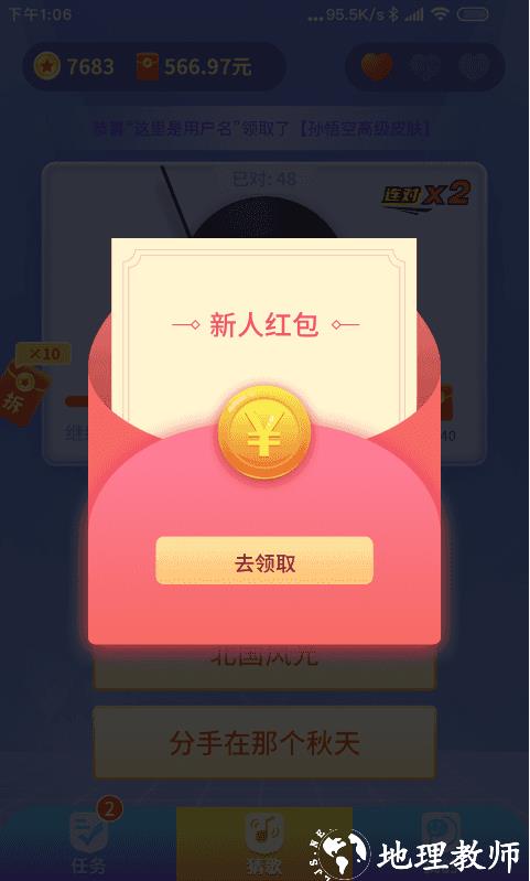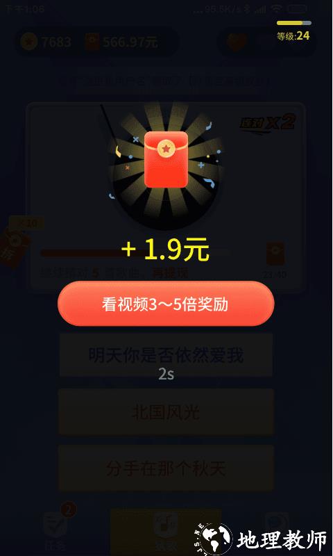 3. 赚钱功能:用户通过猜对歌曲名称即可获得金币奖励,金币可以兑换现金红包,让玩家在享受音乐的同时还能赚取收益。