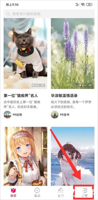 2、进入小米画报界面,找到并点击右下方标注 “设置” 的选项;