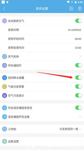 3、将短时降水提醒关闭即可